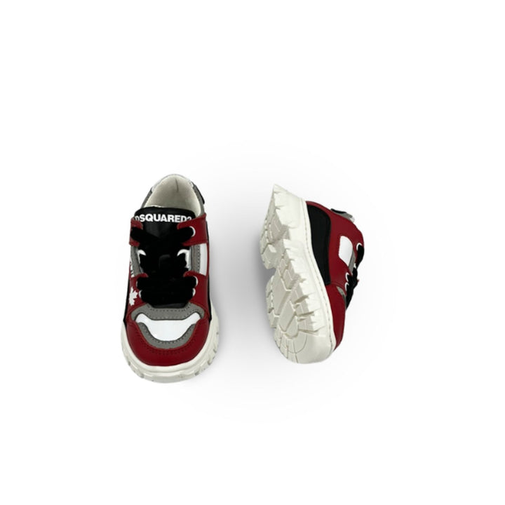 Dsquared2 Icon contrast-panel low-top sneakers in red/multicolour, calf leather contrasting panel, detail logo print to the side logo-print tongue front lace-up fastening rubber sole../ | \