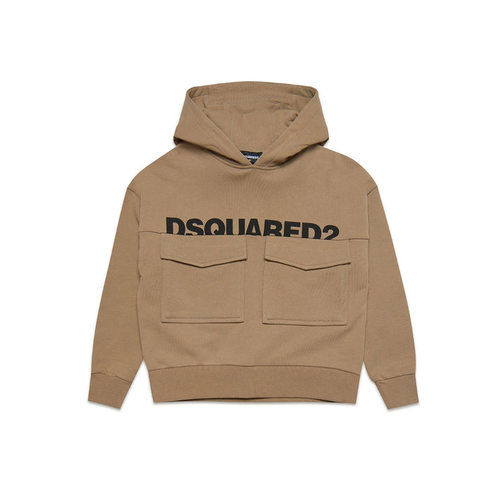 Kids Beige Front Flap Pocket Hoodie