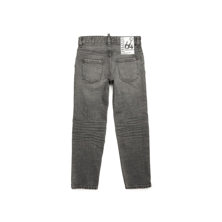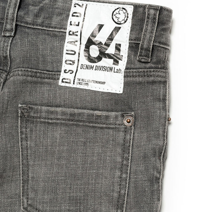 Ash grey stretch-cotton denim jeans, logo patch to the front, logo patch to the rear, slim cut, mid-rise, belt loops, front button and zip fastening, classic five pockets.