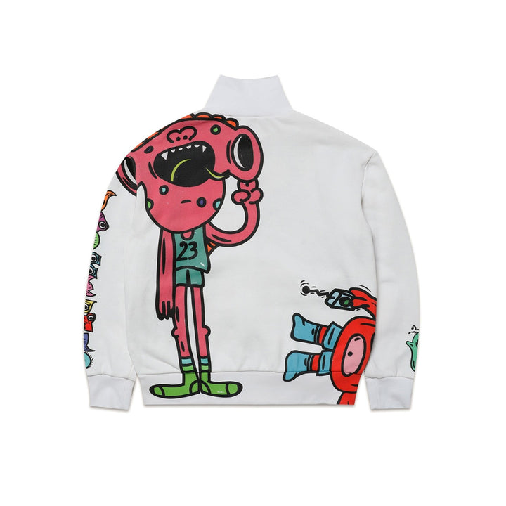 Kids White Monsters Printed Sweatshirt With Zip