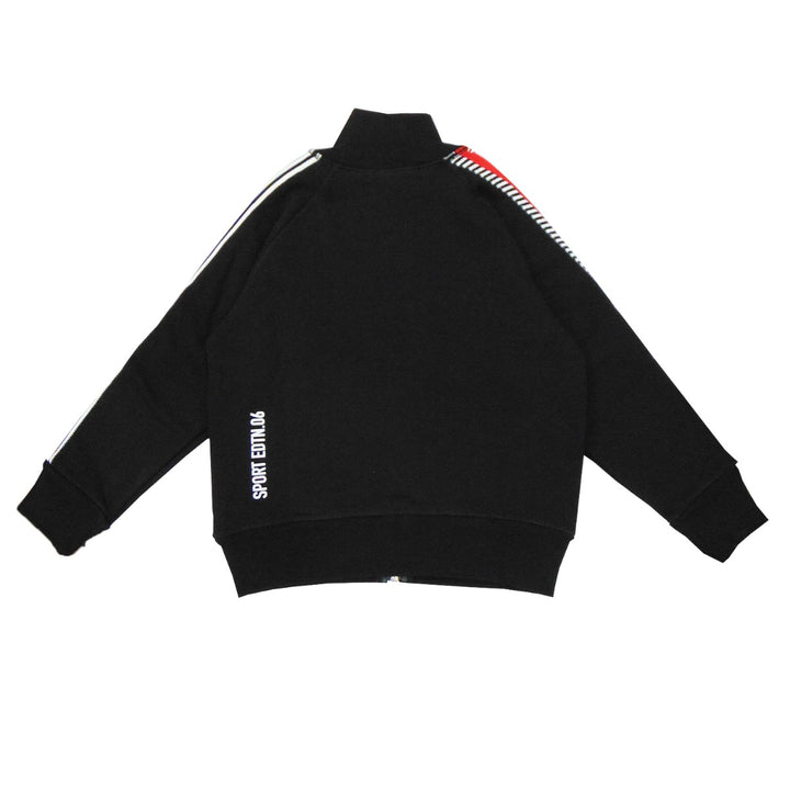 If you are looking for a trendy sweatshirt then you can’t say no to this super stylish black sweatshirt by Dsquared2. This black sweatshirt comes from the sports edition collection of the brand that is high on style and comfort. The brand logo print in contrasting colors over the sleeves is simply adding to the style factor of the sweatshirt which your kid will also love to flaunt.