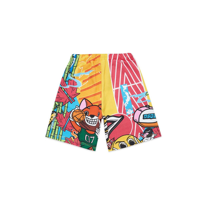Short shorts with drawstring waistband. The garment features an allover cartoon print inspired by the Shibuya world, one of Dsquared2's signature elements, and the Sport Edtn 07 logo on the back.