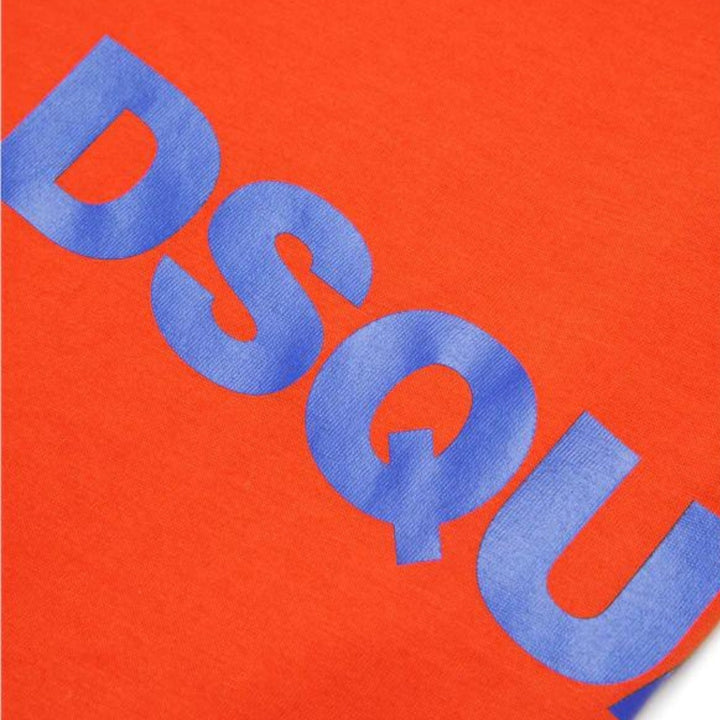 Short-sleeved crew-neck T-shirt in jersey. Relaxed, regular fitting. Features a contrasting color Dsquared2 logo that hugs the garment starting at the front and ending at the back. Made of 100% cotton. A cool option for summer occasions.