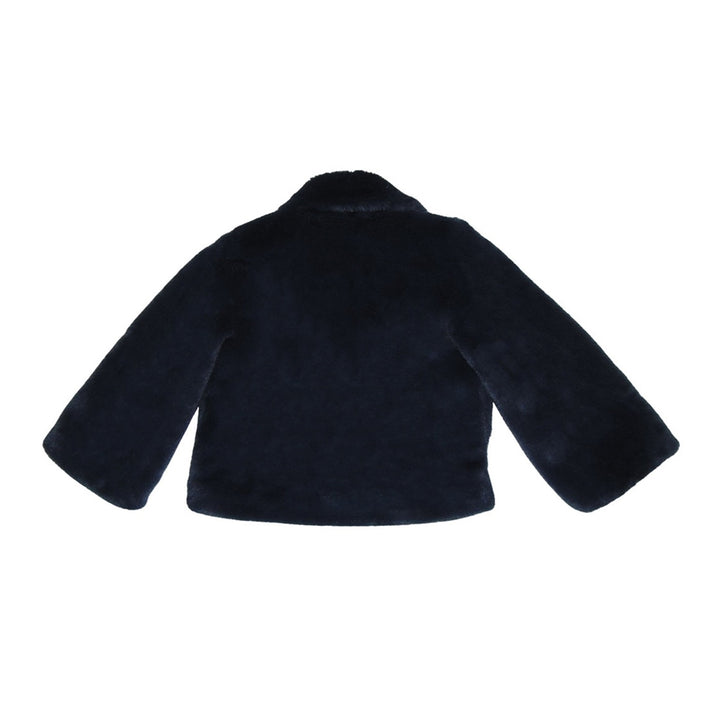 Dark Blue faux fur girls jacket by Elie saab with a front hook for extra support. Perfect for your kids winter parties and winter outfits.
