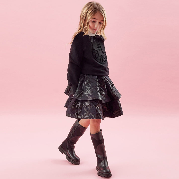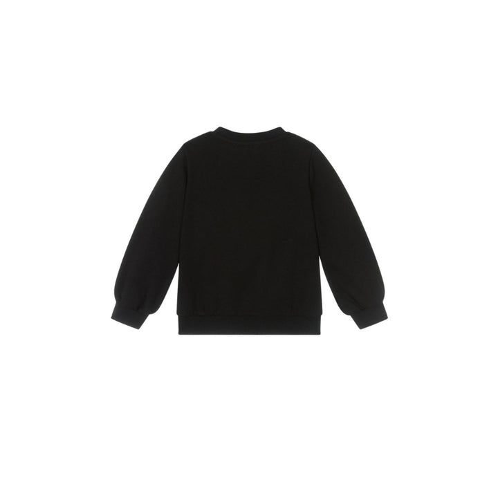 Elegant black organic cotton sweatshirt for girls from luxury designer Elie Saab. This sleek design is made in soft and stretchy, medium-weight jersey with the label's signature monogram logo in black flocking on the front. The crew neckline, cuffs and hem are ribbed for comfort.