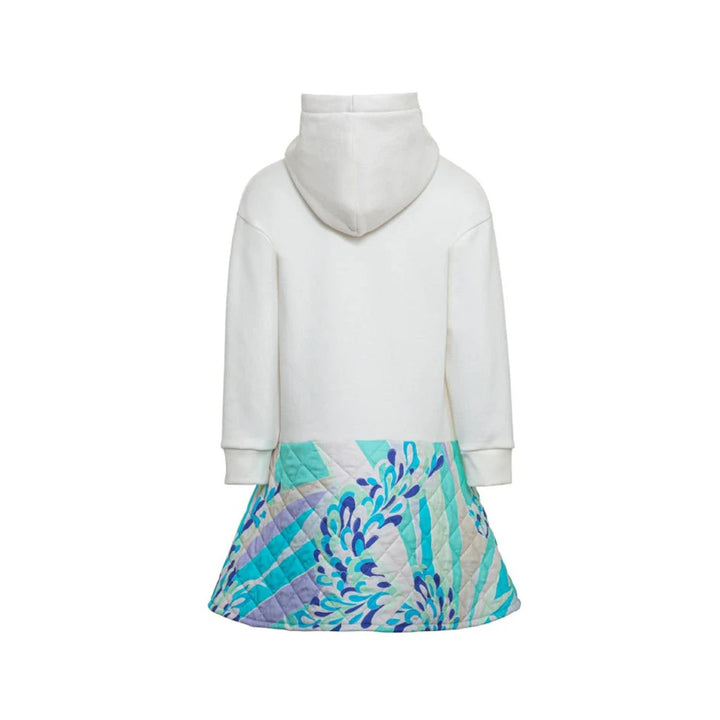 Emilio Pucci Sweatshirt dress in white and multicolor frock for fall and winters. Perfect for your girls playdates and picnics. Pair it with a cool handbag for extra chic look.