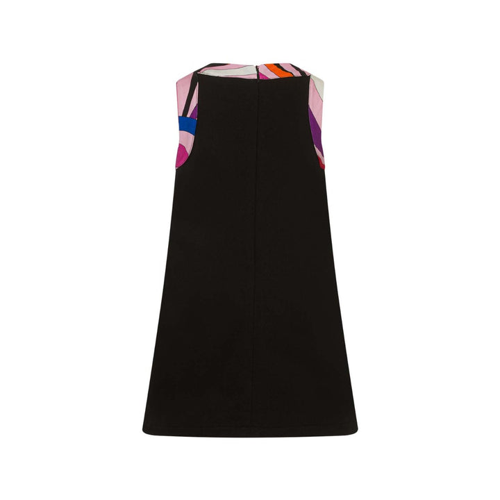 Girls Black Iride-Print A-line Dress with embroidered logo to the side and concealed rear zip fastening.