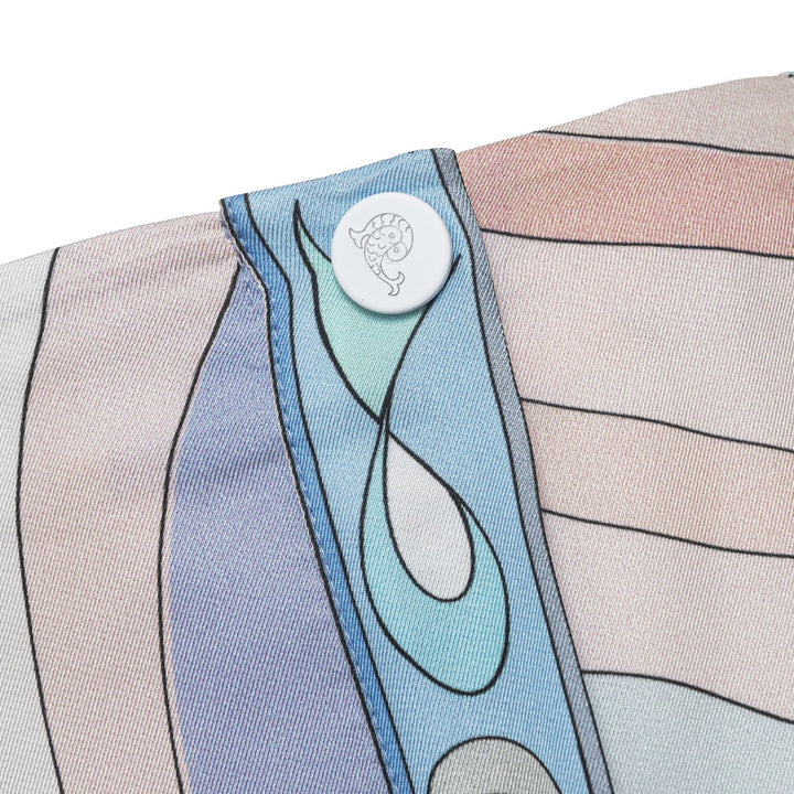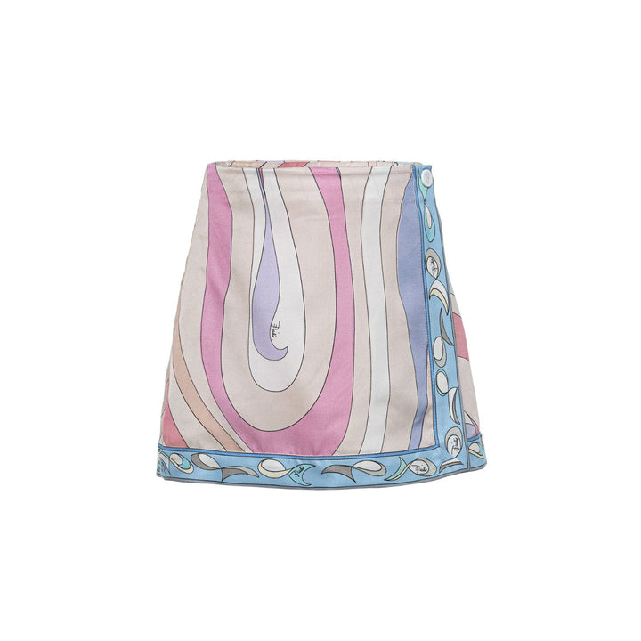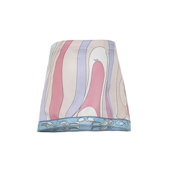 Pink abstract skirt for girls by Emilio Pucci. Made from soft viscose, it features the brands abstract print pattern and blue trim on the waist and it fastens with zip on the side.