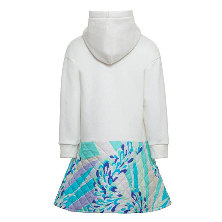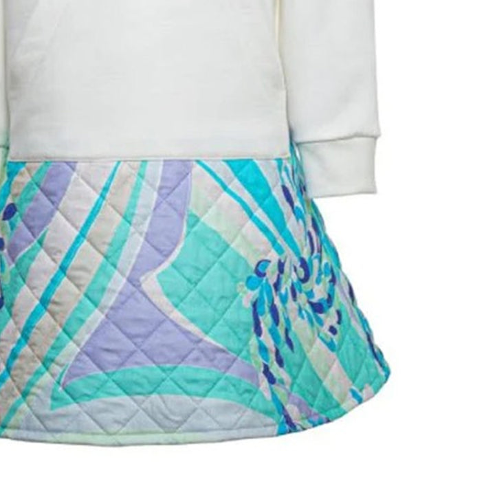 Emilio Pucci Sweatshirt dress in white and multicolor frock for fall and winters. Perfect for your girls playdates and picnics. Pair it with a cool handbag for extra chic look.