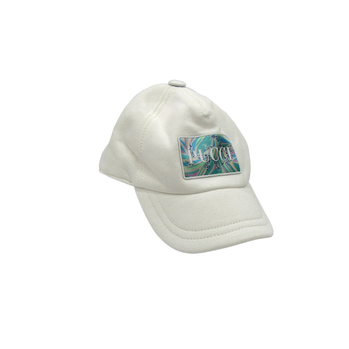 Emilio Pucci White Cap with a logo in front with a colorful background perfect for a fashion look and to protect your kids from hot and sun outside.
