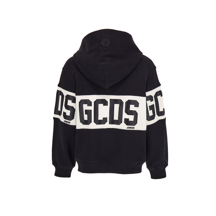 This is a single chain hoodie with the brand name on a white stripped rectangle in the middle which gives a stylish look.