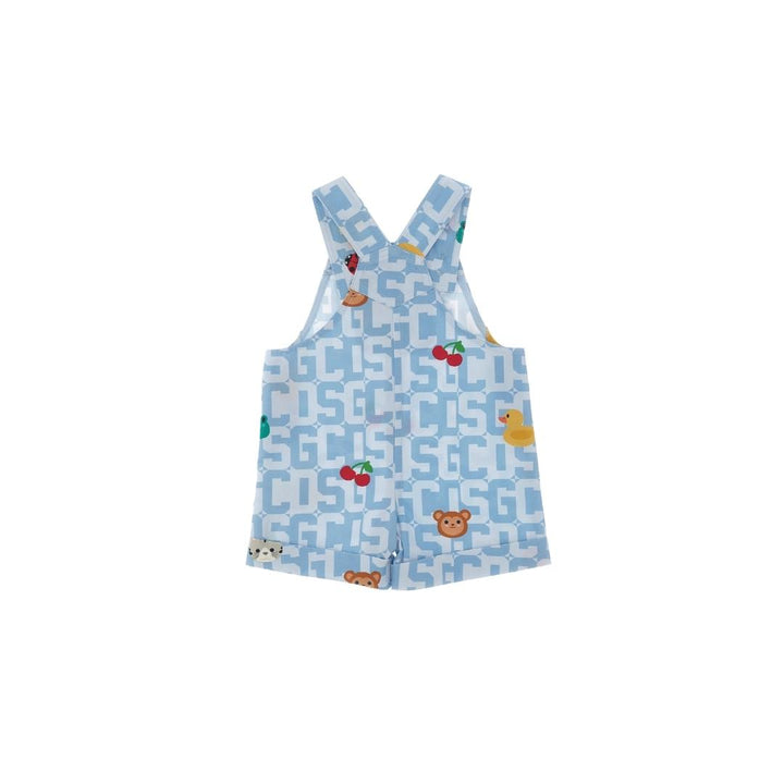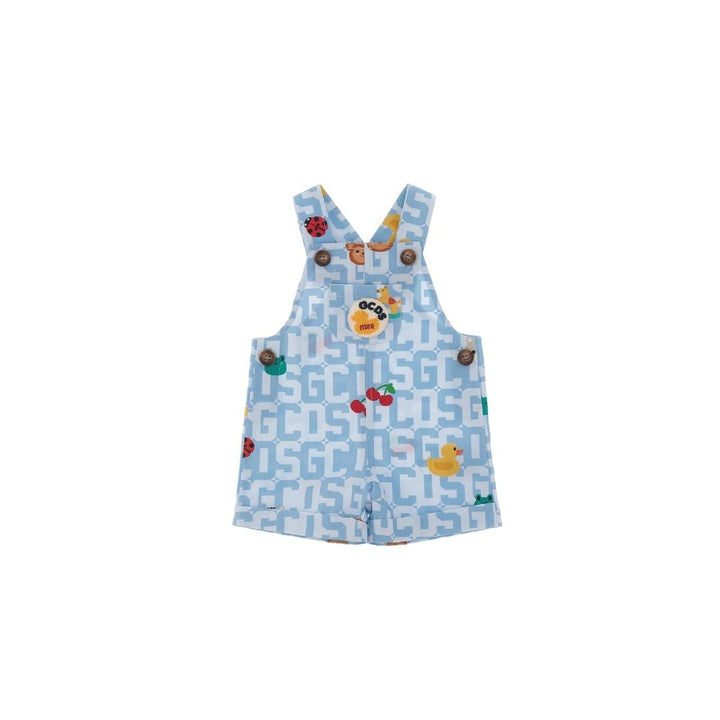 Monogram-Pattern Denim Dungarees From Gcds Kids Featuring Cotton, Wool Blend, Monogram Pattern, Patch Detail, Square Neck, Sleeveless And Blue-Multicolour. It Can Be Paired With A Cotton Tshirt Inside