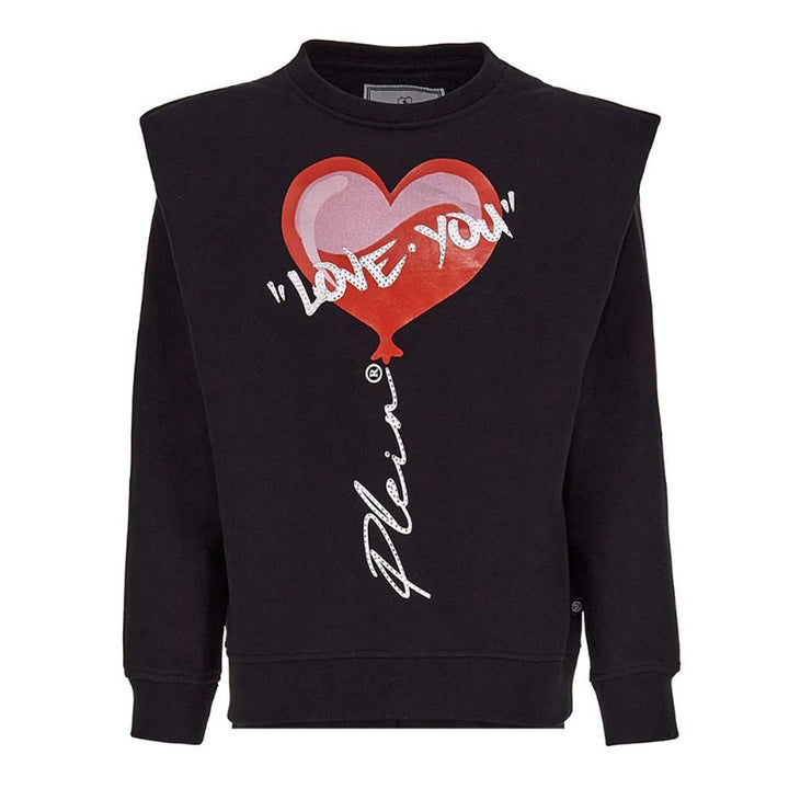 Girl Black Heart Print Tracksuit Presents By Philipp Plein.Made in soft cotton,.and a casual Round neckline and comfart Trouser full length.