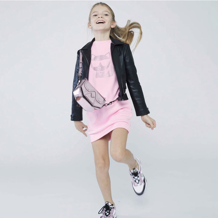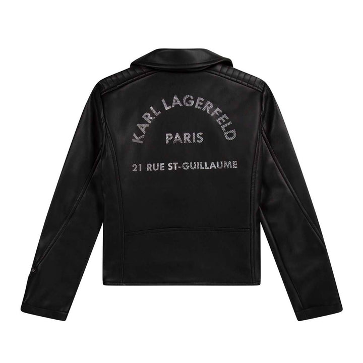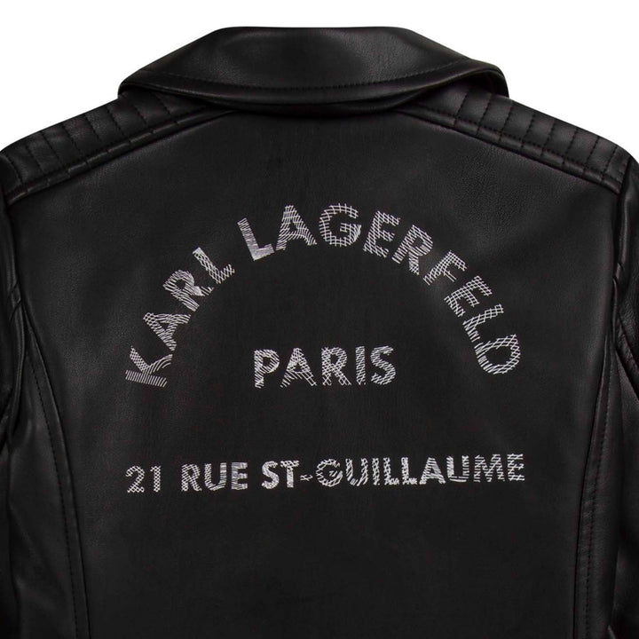 off-center zip biker jacket from KARL LAGERFELD KIDS featuring black, classic collar, off-centre front zip fastening, long sleeves and zip details.