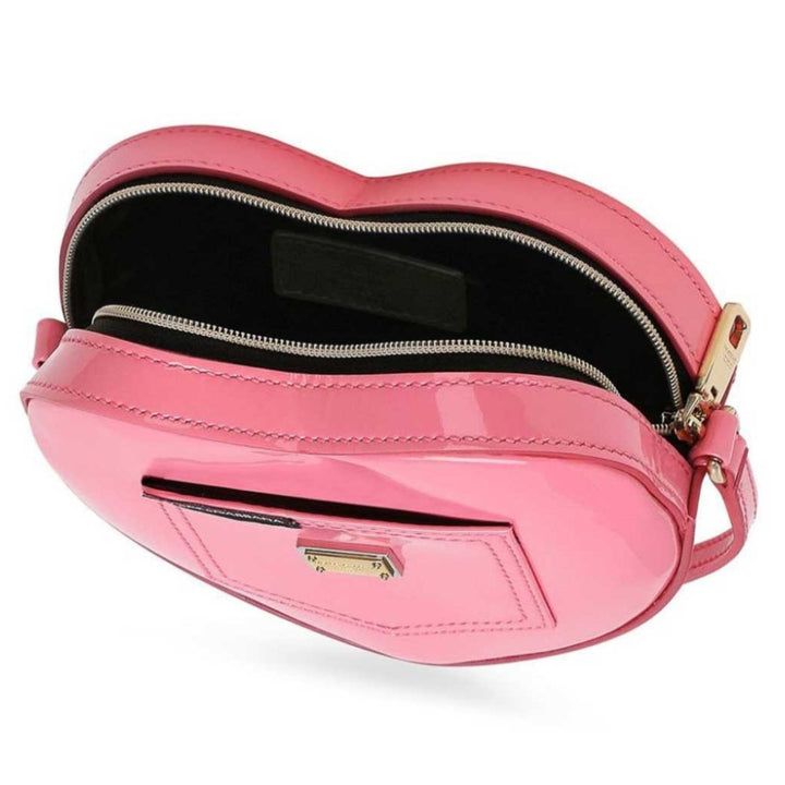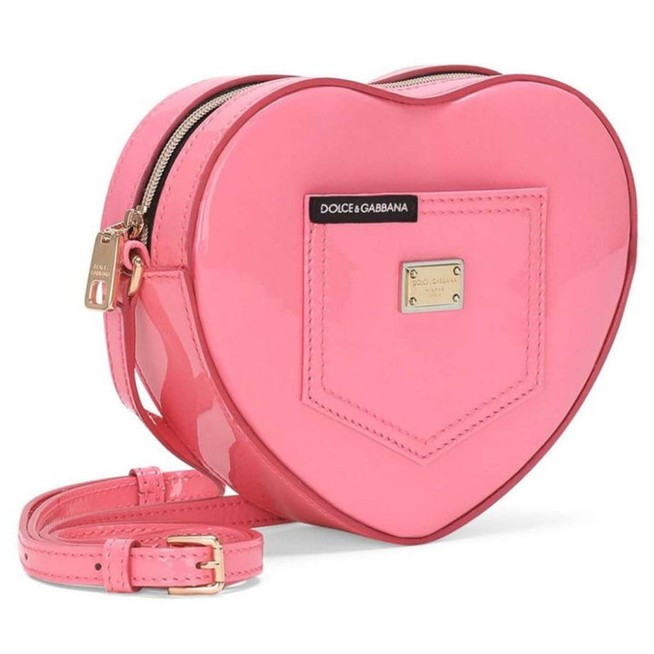 Dolce & Gabbana Kids puts a playful spin on this patent leather shoulder bag through its romantic heart shape and jean-style patch pocket detailing.