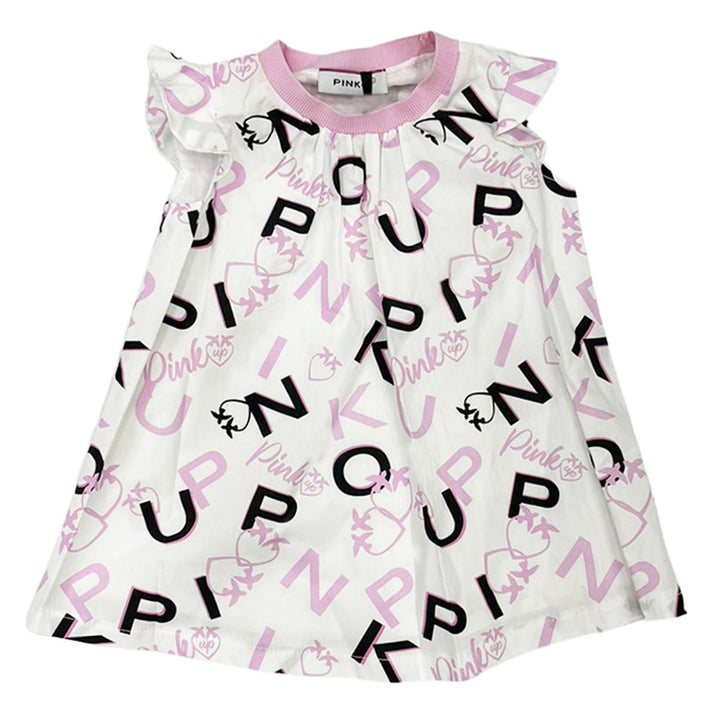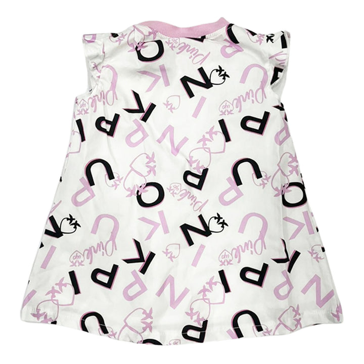Girl White And Pink Cotton Half Sleeve Dress   32980200