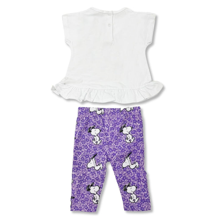 Made from pure cotton, this girls white and purple graphic-print outfit ensures comfort and durability throughout the day. The lightweight and breathable fabric makes it suitable for all-day wear, while the vibrant graphic print brings fun and youthf
