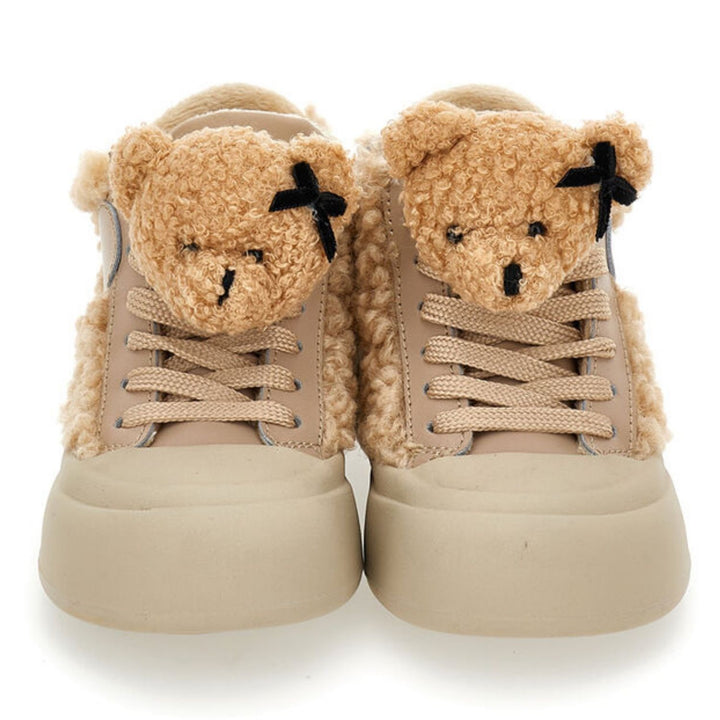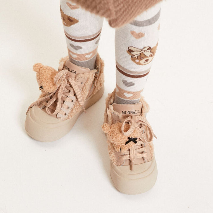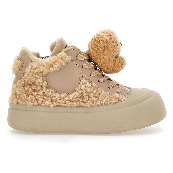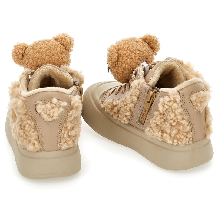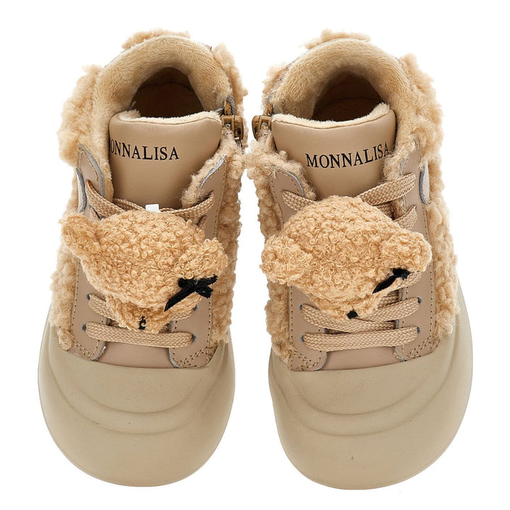 Cute and comfy, these beige Monnalisa sneakers feature an adorable teddy bear detail, perfect for playful everyday wear.