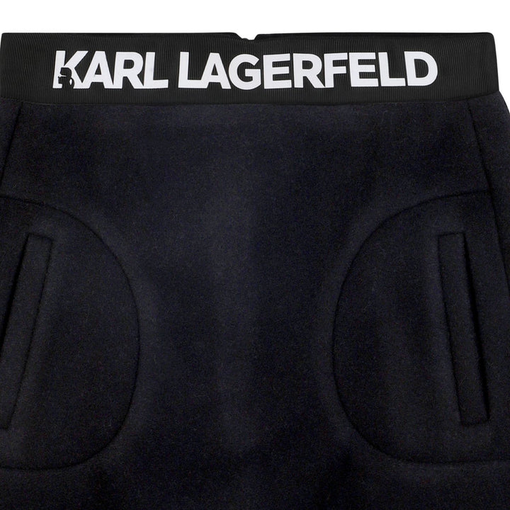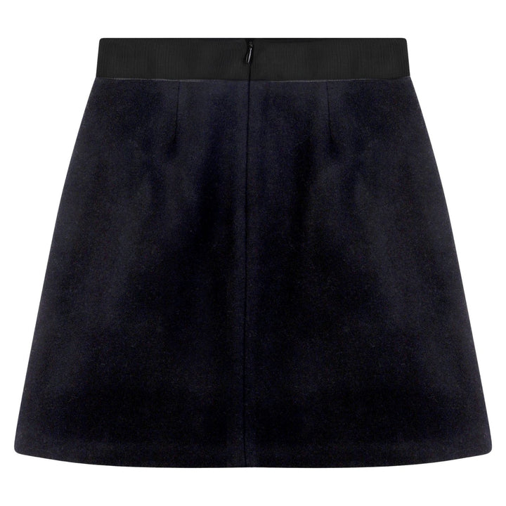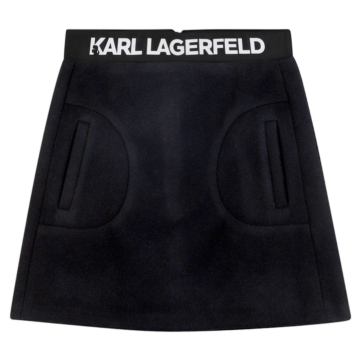 A classic black A-line skirt from Karl Lagerfeld, crafted for a chic and timeless look. Featuring a comfortable fit and elegant silhouette perfect for both casual outings and special occasions.