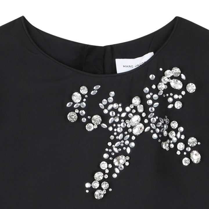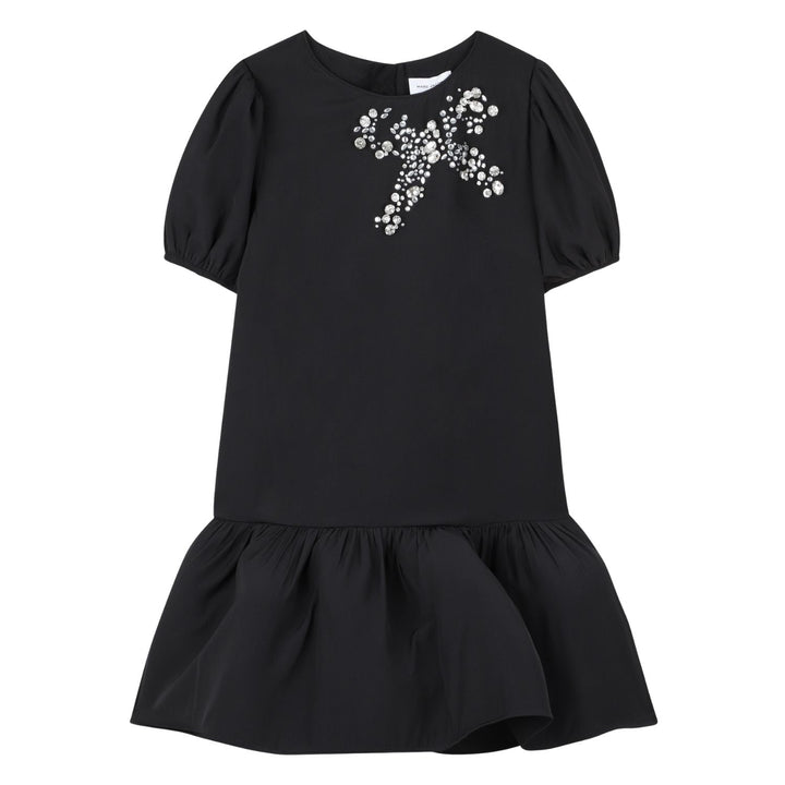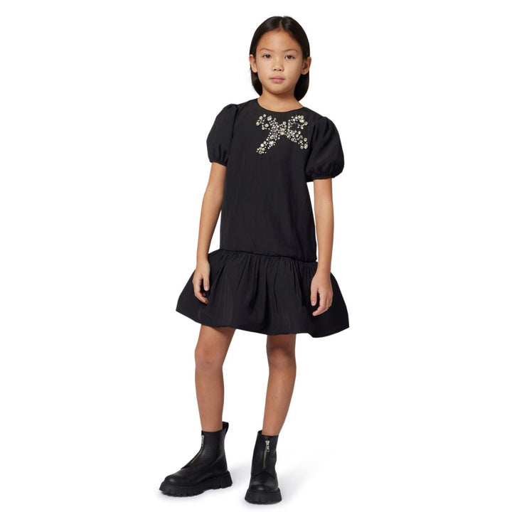 Marc Jacobs Girls Black Bow-Patch Dress is made from 1% polyester, featuring a chic bow patch detail. Elegant and comfortable, it is perfect for adding a stylish touch to any occasion.