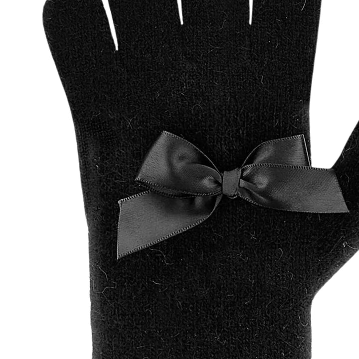 Elegant black gloves detailed with Monnalisa’s signature bow patch a chic winter essential with a touch of playful charm.