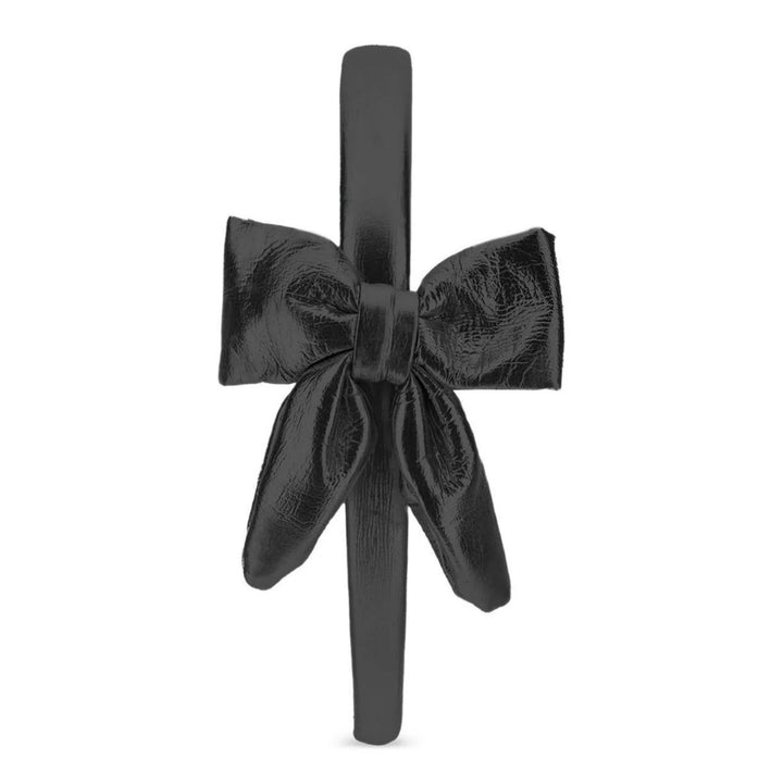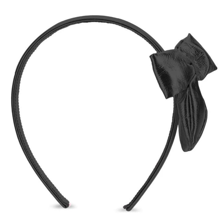 A sleek black hairband for girls, adorned with a chic bow detail. Elegant and versatile, this Monnalisa accessory is perfect for completing both casual and dressy looks.