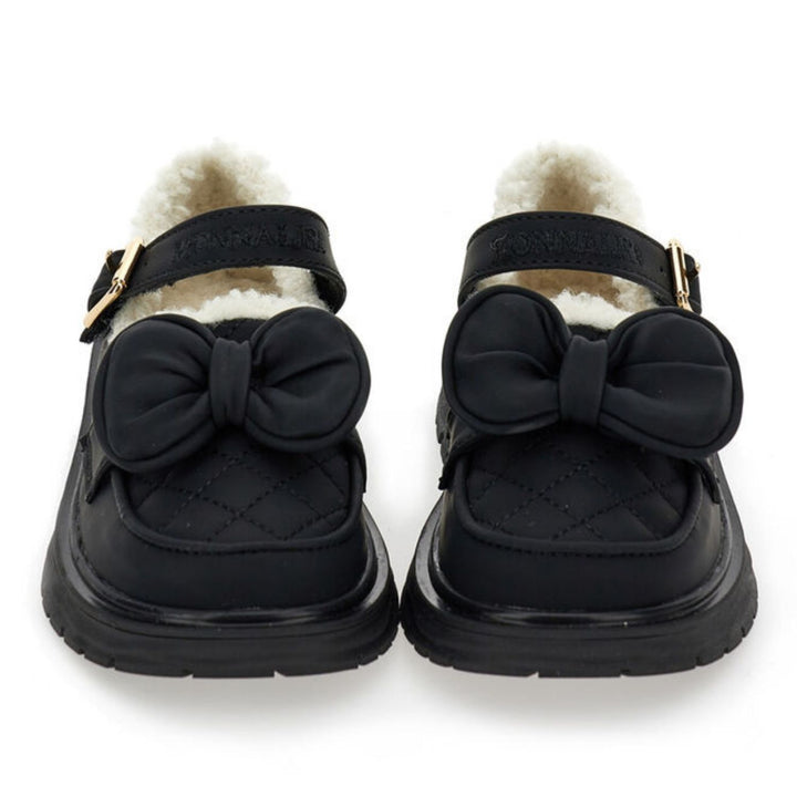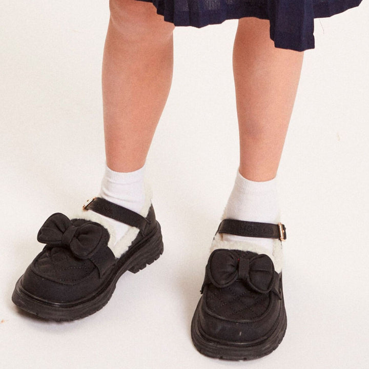 Elegant and stylish, these black Monnalisa shoes feature a classic bow detail, perfect for dressing up any outfit.