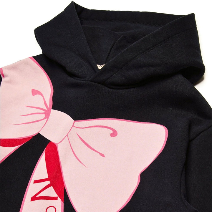 Girls Black Cartoon Style Bow-Print Hoodie