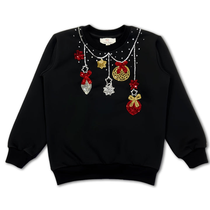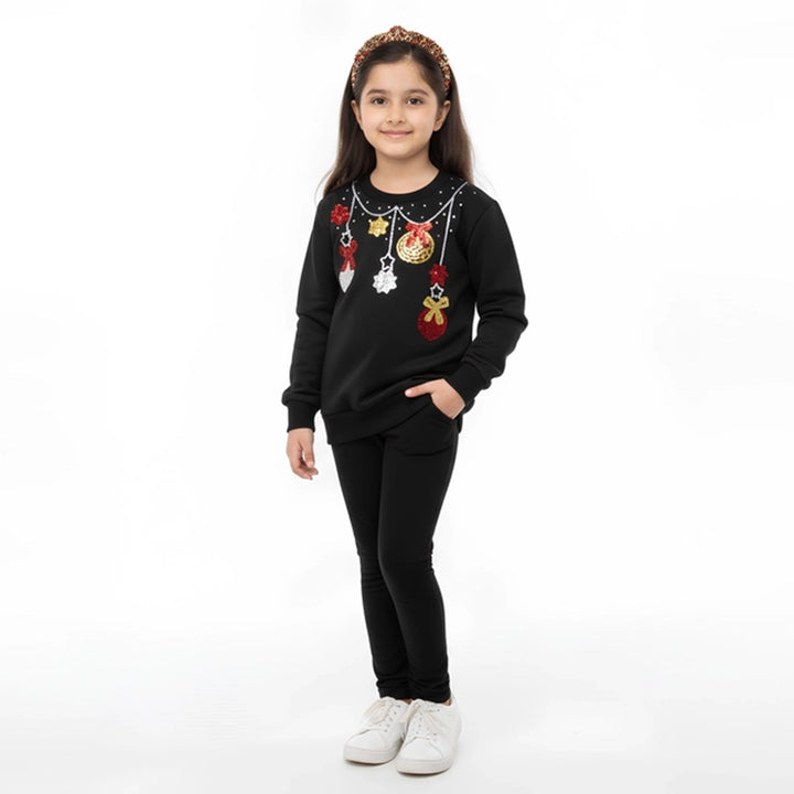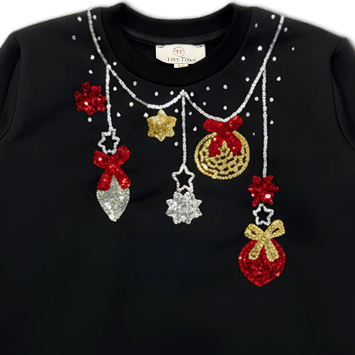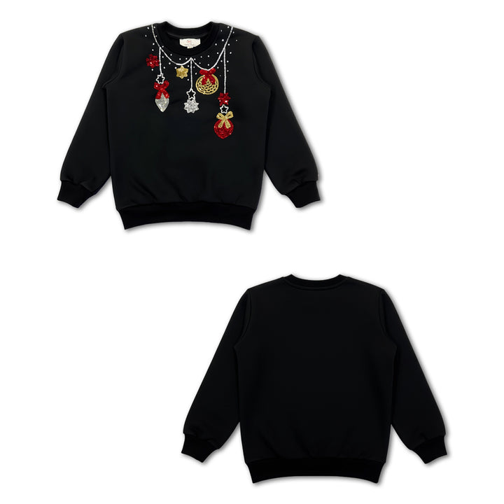 Girls black Christmas sequin sweatshirts designed with sparkling festive details Made from soft comfortable fabric perfect for holiday parties and winter style