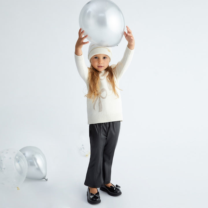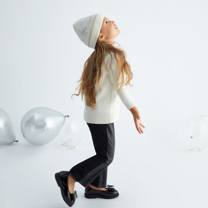Girls Black Coated Fabric And Stretch Blend Trouser