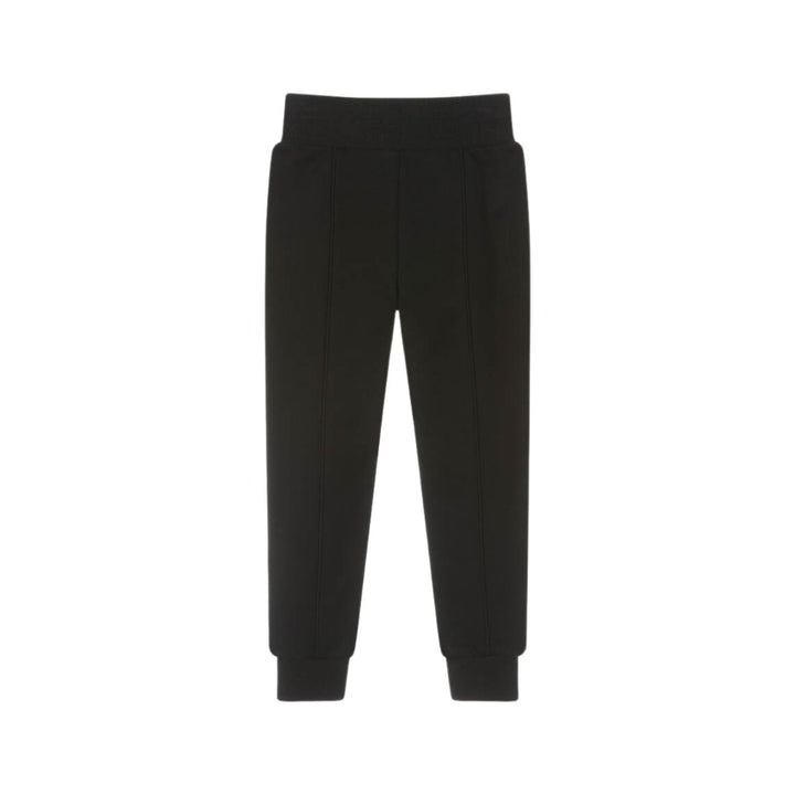 Black cotton joggers for girls by DKNY, part of the brand's Heart of NY capsule collection. Both casual and comfortable, these cuffed jersey joggers have stitched seams down the front and back and useful concealed pockets. The waistband is elasticated for comfort and, for designer appeal, a white and red heart logo is stamped on the front.