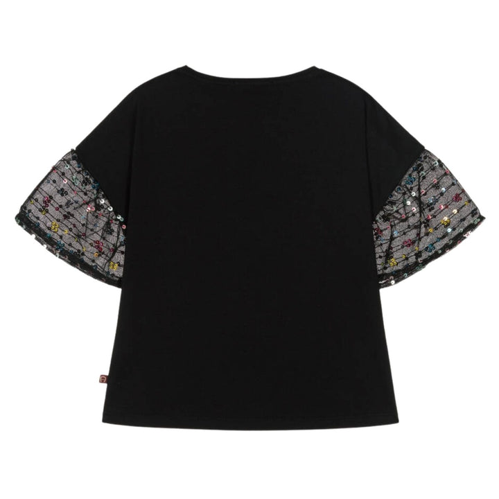 Girls Black Cotton & Tulle Sleeves T-Shirt
