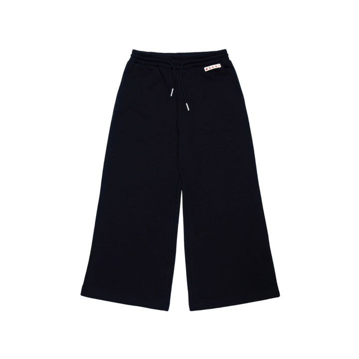 Fleece wide fit trousers. Drawstring waist. Institutional logo flag on the front. American-style front pockets. Made of 100% cotton. A versatile garment suitable for various occasions.