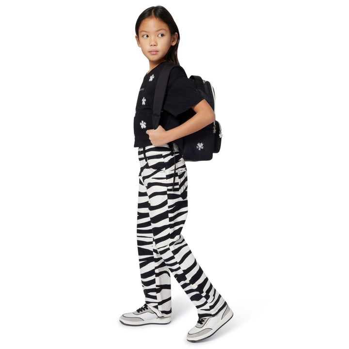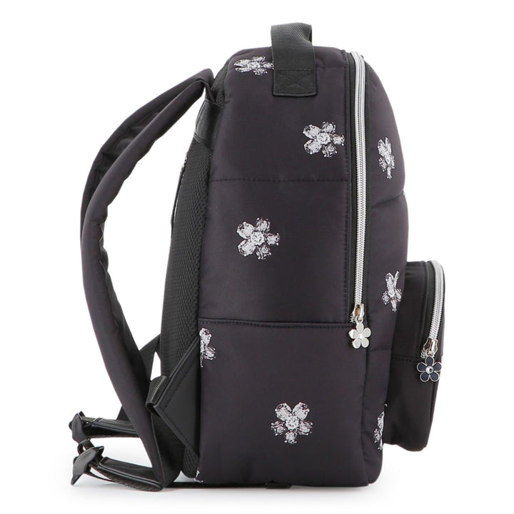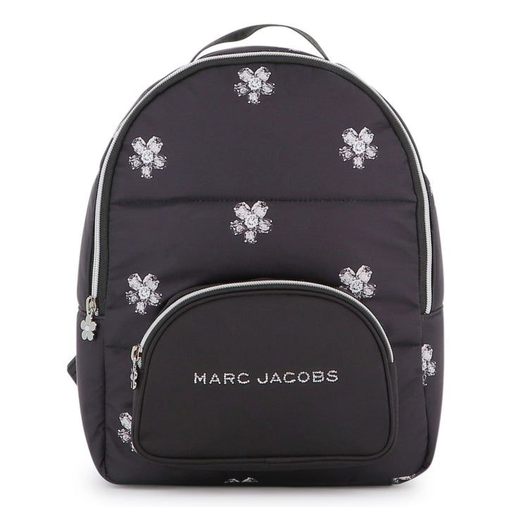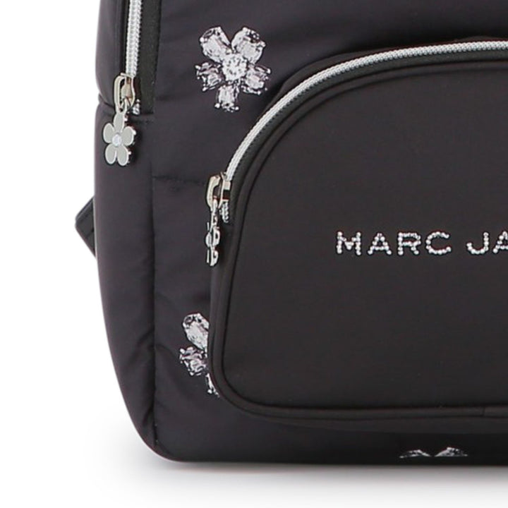 Girls Black Floral Logo-Print Backpack by Marc Jacobs combines practicality with style, featuring a vibrant floral pattern and signature logo print. Perfect for school days or casual outings.