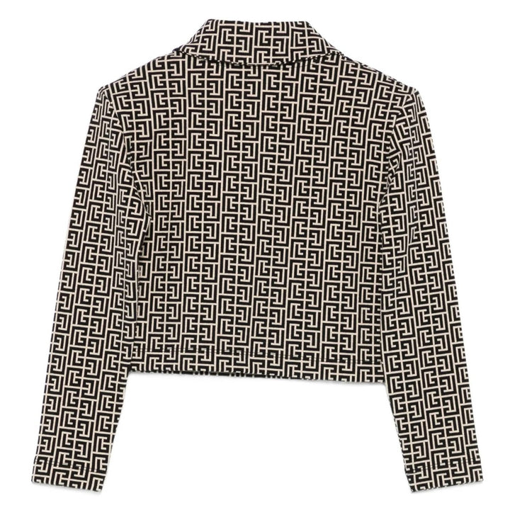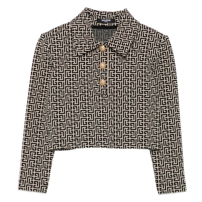 Elevate her knitwear collection with this chic black monogram sweater from Balmain. Featuring an all-over tonal Balmain monogram pattern, this sweater exudes luxury and modern edge. Crafted from a soft and cozy knit, its designed with a classic crew neckline, long sleeves, and ribbed trims for a snug and stylish fit. Perfect for both casual and dressed-up occasions, its a statement piece with timeless appeal.