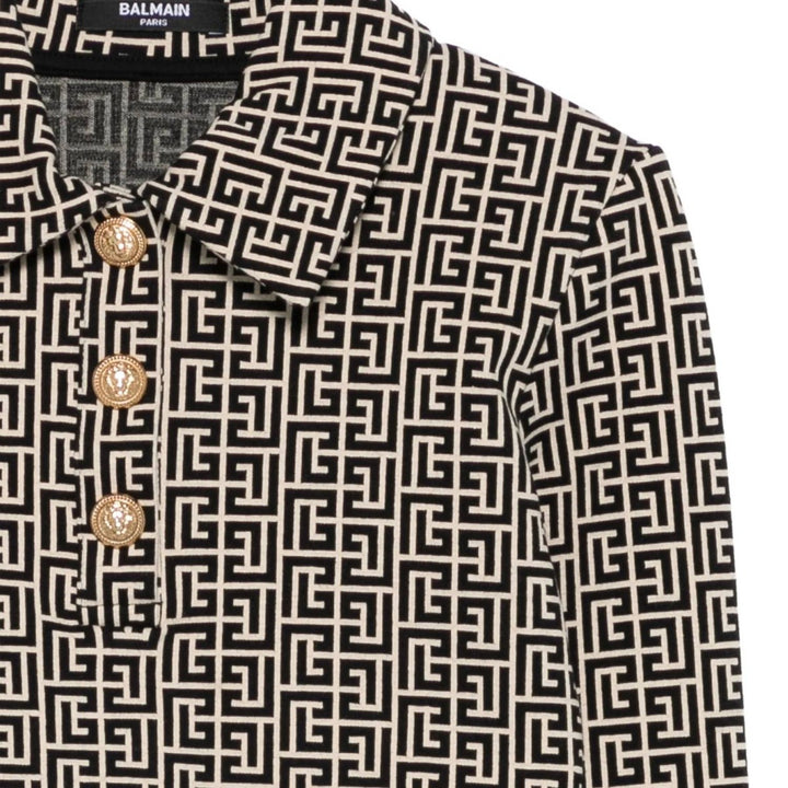 Girls Black Geometric-Print Buttoned Polo Sweatshirt