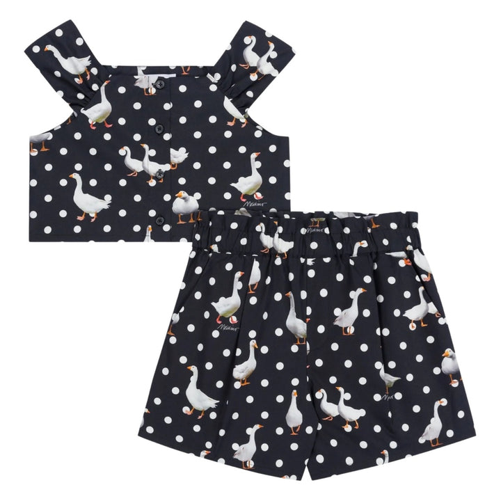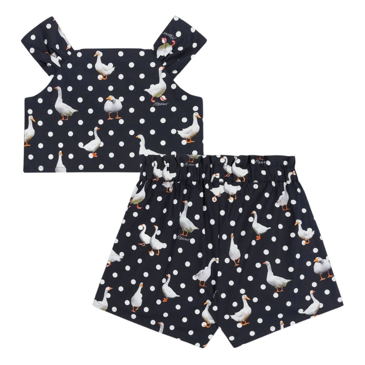 Girls Black Goose-Print Top & Shorts Set