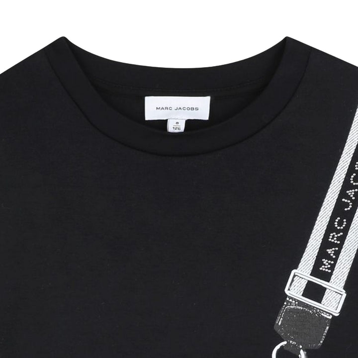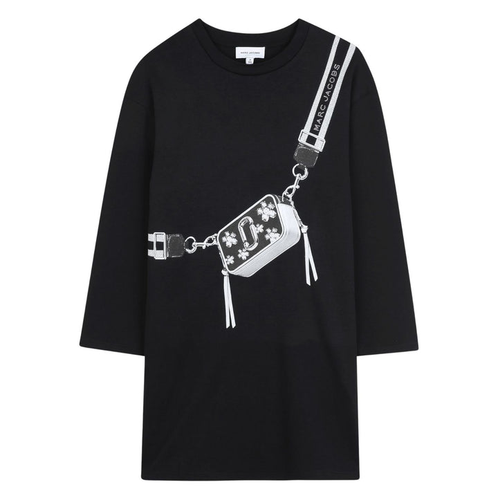 This Marc Jacobs Girls Black Graphic-Print Dress offers a stylish mix of comfort and creativity, featuring a bold graphic design and high-quality fabric for everyday wear with a touch of luxury.