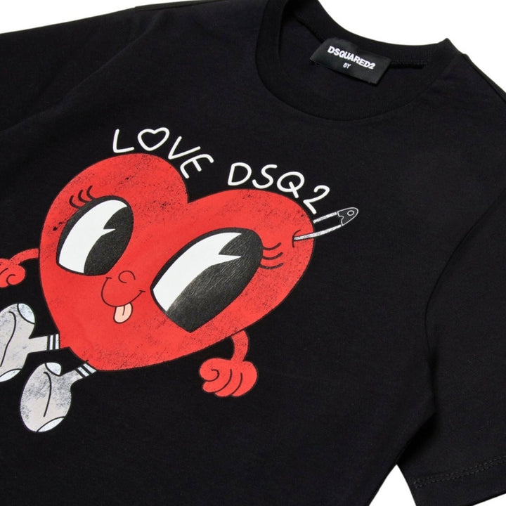 Girls Black Heart Motif-Print Cotton T-Shirt