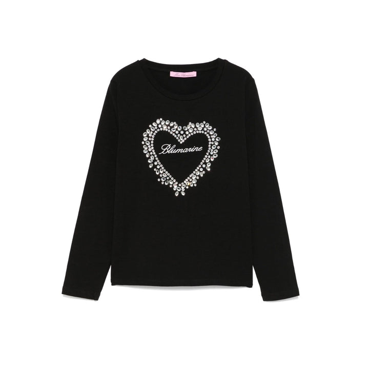 Girls Black Heart Rhinestone-Embellished T-shirt