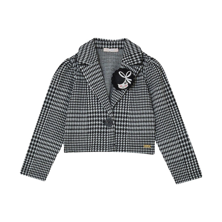 Girls Black Houndstooth Blazer With Brooch