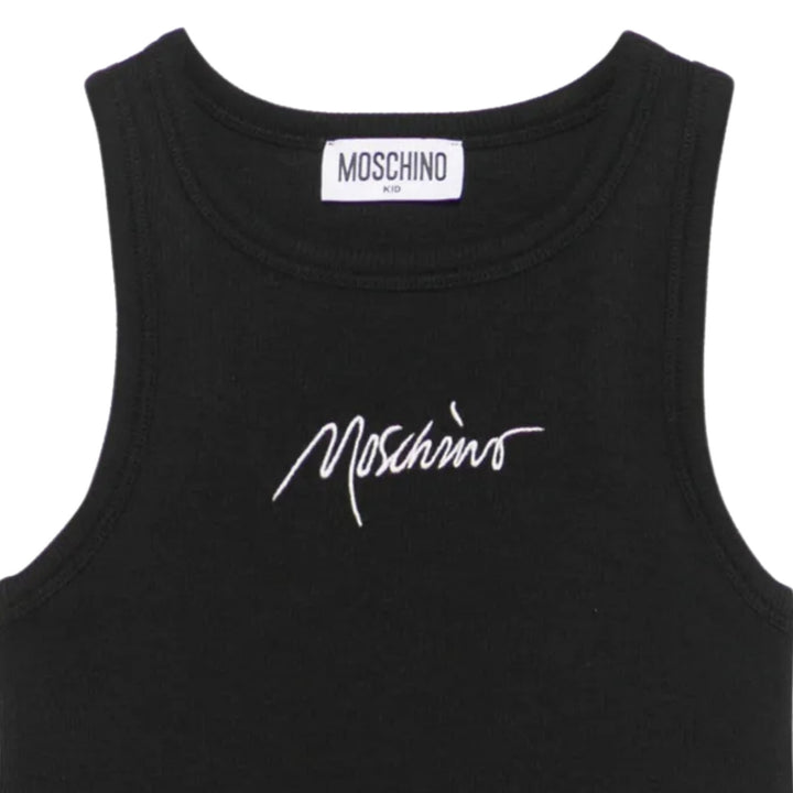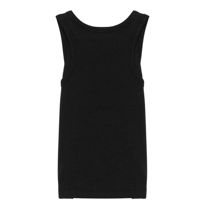 Black logo-embroidered tank top with a crew neck and sleeveless design. A stylish and comfortable staple for any wardrobe.