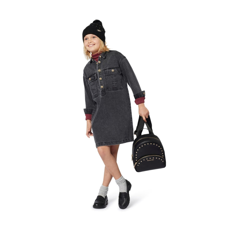 Girls Black Logo-Print Backpack Made from 1% Polyester, this black backpack features a bold logo print, offering a stylish and practical accessory for school or everyday use.