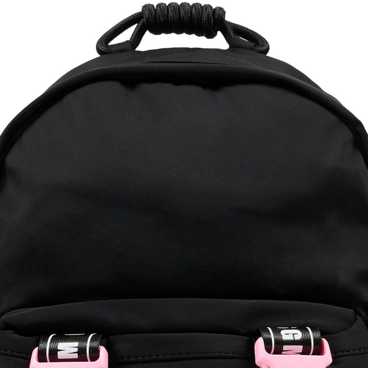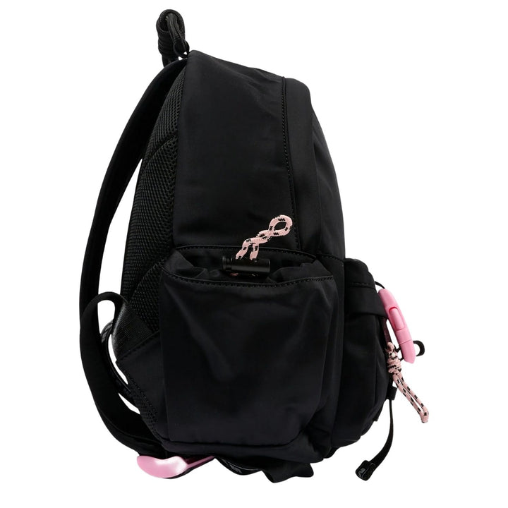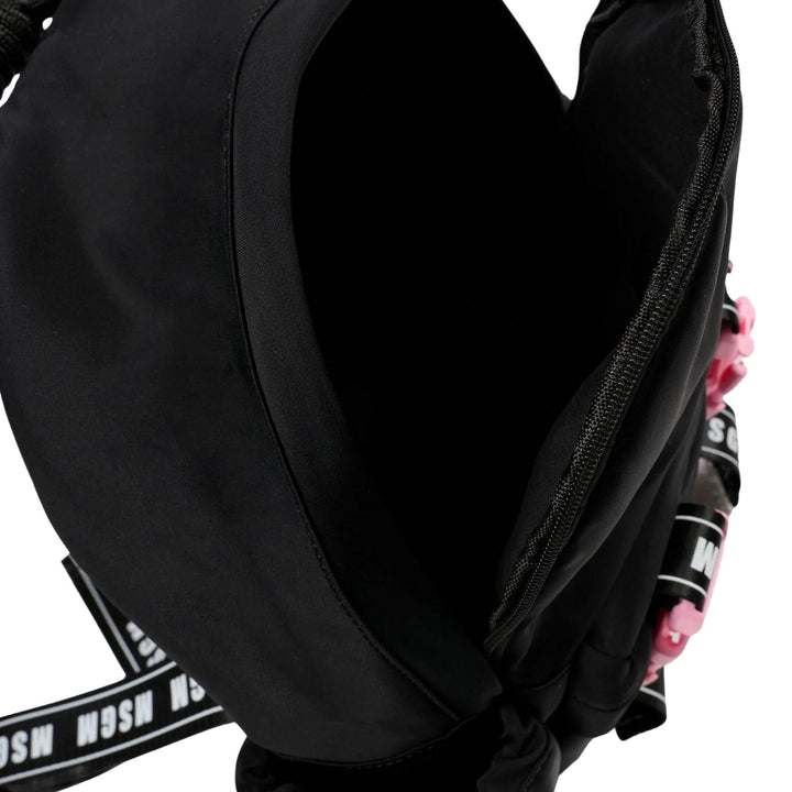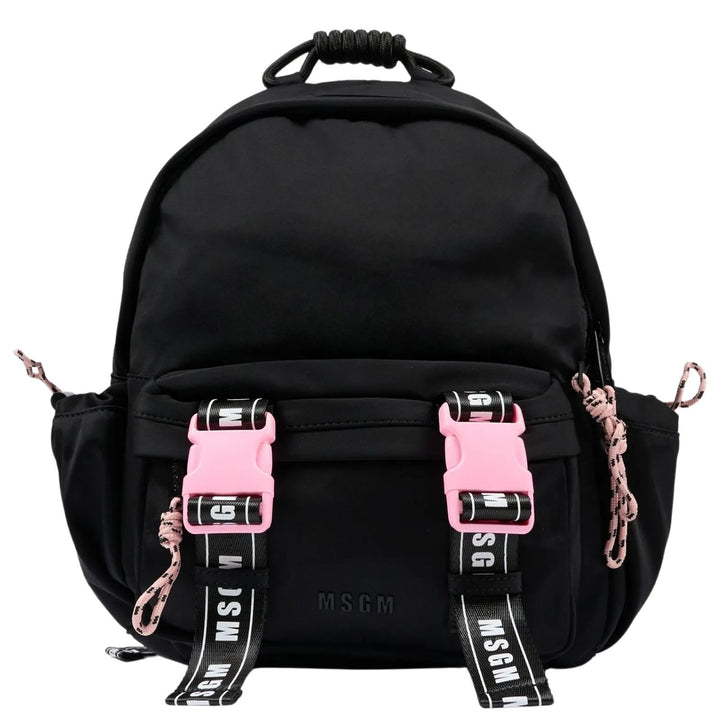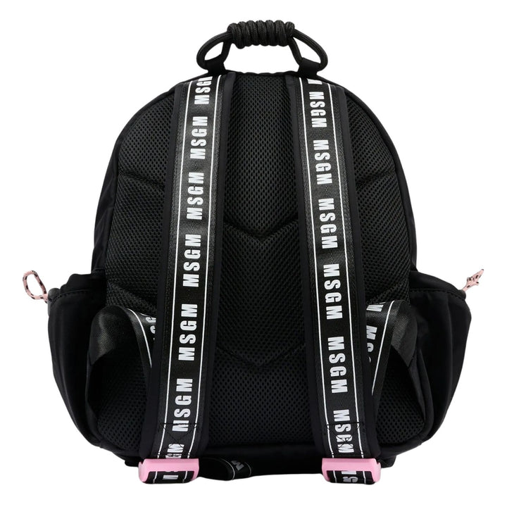 A chic black backpack featuring a stylish logo print that adds a modern touch. Designed for girls, it offers a spacious interior, sturdy straps, and durable material, making it ideal for school, outings, and daily use. A perfect blend of practicality and trendy style.