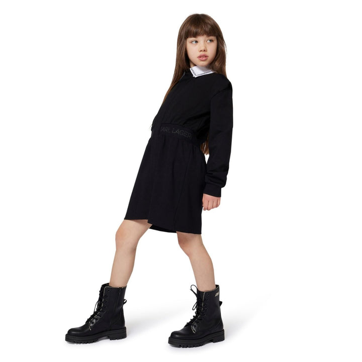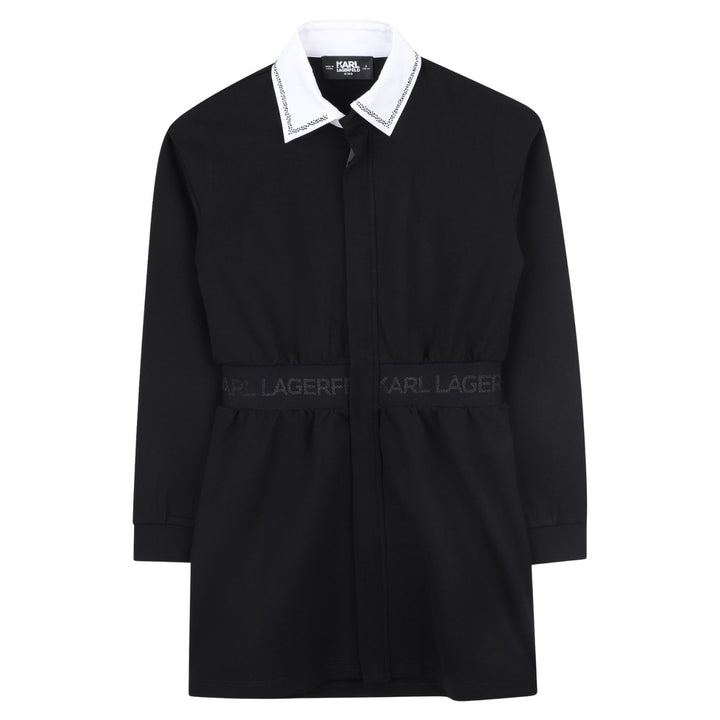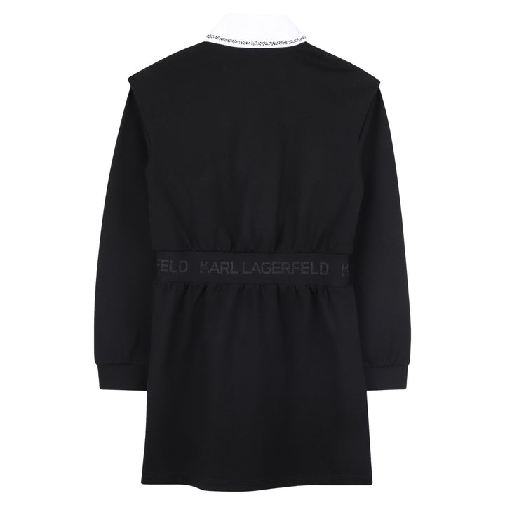 A chic black logo-print dress from Karl Lagerfeld, featuring a sleek silhouette and soft fabric. Perfect for casual outings or special occasions with a touch of designer elegance.
