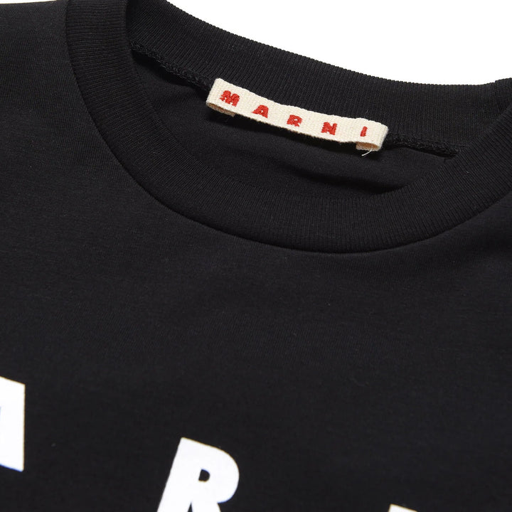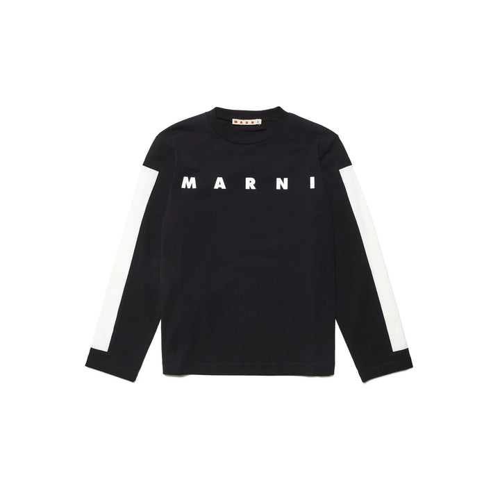 Crew-neck, long-sleeved, stretch cotton jersey T-shirt. Features contrasting side bands on the sleeves and an Institutional Marni logo on the front.
