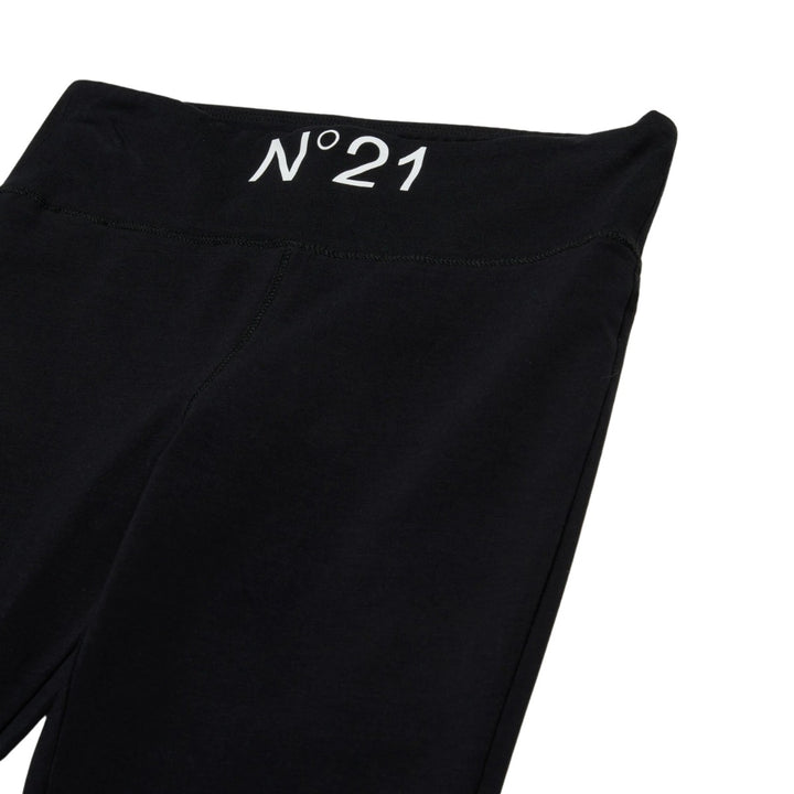 Girls Black Logo-Print leggings by N21 featuring a comfy fit with bold logo detailing perfect for casual and sporty looks.