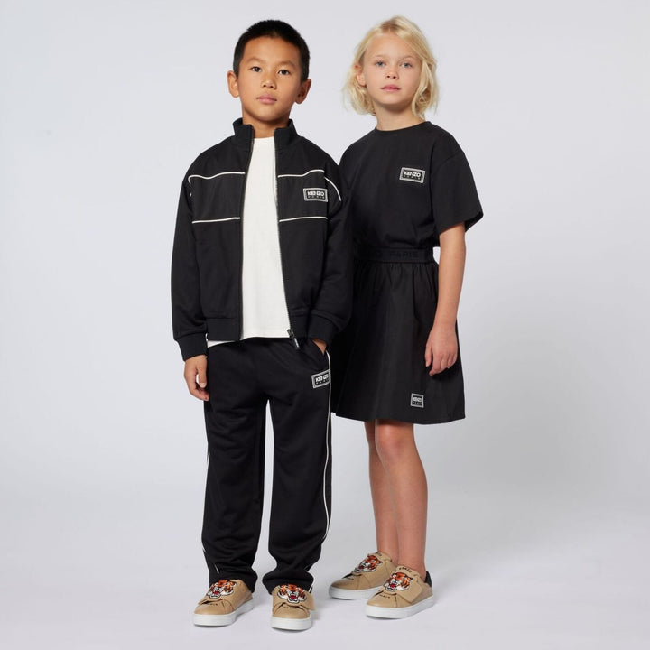 Black skirt for girls by KENZO KIDS. Made from soft fabric, it features the brands logo patch on the front. Finished with elasticated waist with logo for comfortable fit.