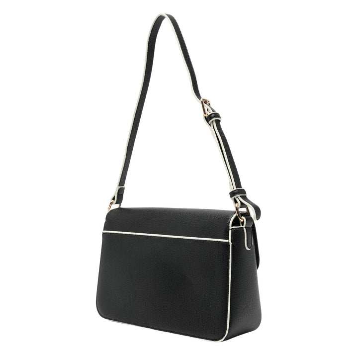 A stylish black sling bag featuring a modern logo print for a chic everyday look. Designed for girls, it comes with a compact main compartment, a secure closure, and a comfortable shoulder strap, making it perfect for outings and casual use. A trendy