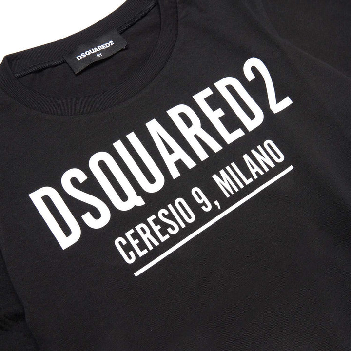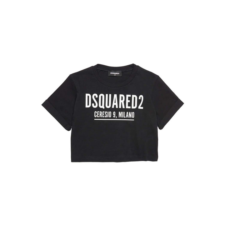 Crew-neck, short-sleeved crop T-shirt in cotton jersey. The garment features the contrasting 'Dsquared2 Ceresio 9, Milano' logo on the front. Made from 1% cotton.